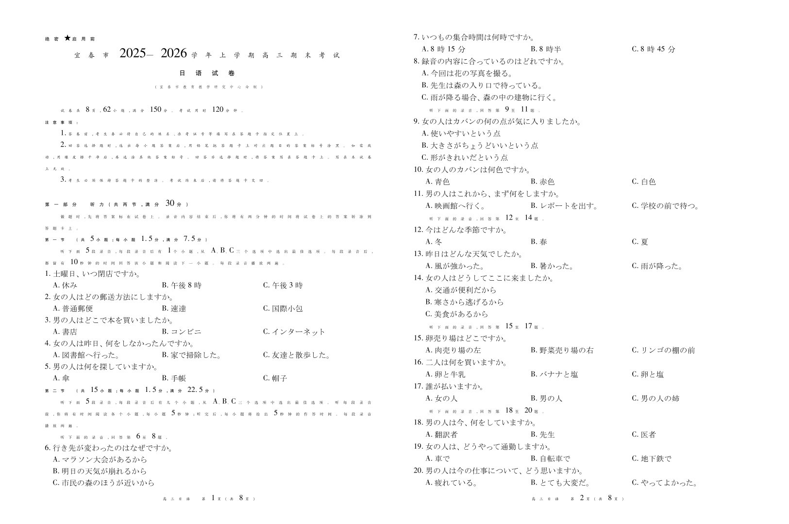 26届1月宜春高三·日语.pdf