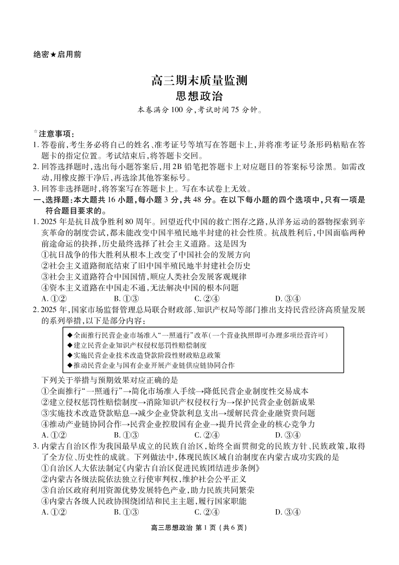 辽宁省点石联考2026届高三期末质量监测 政治.pdf