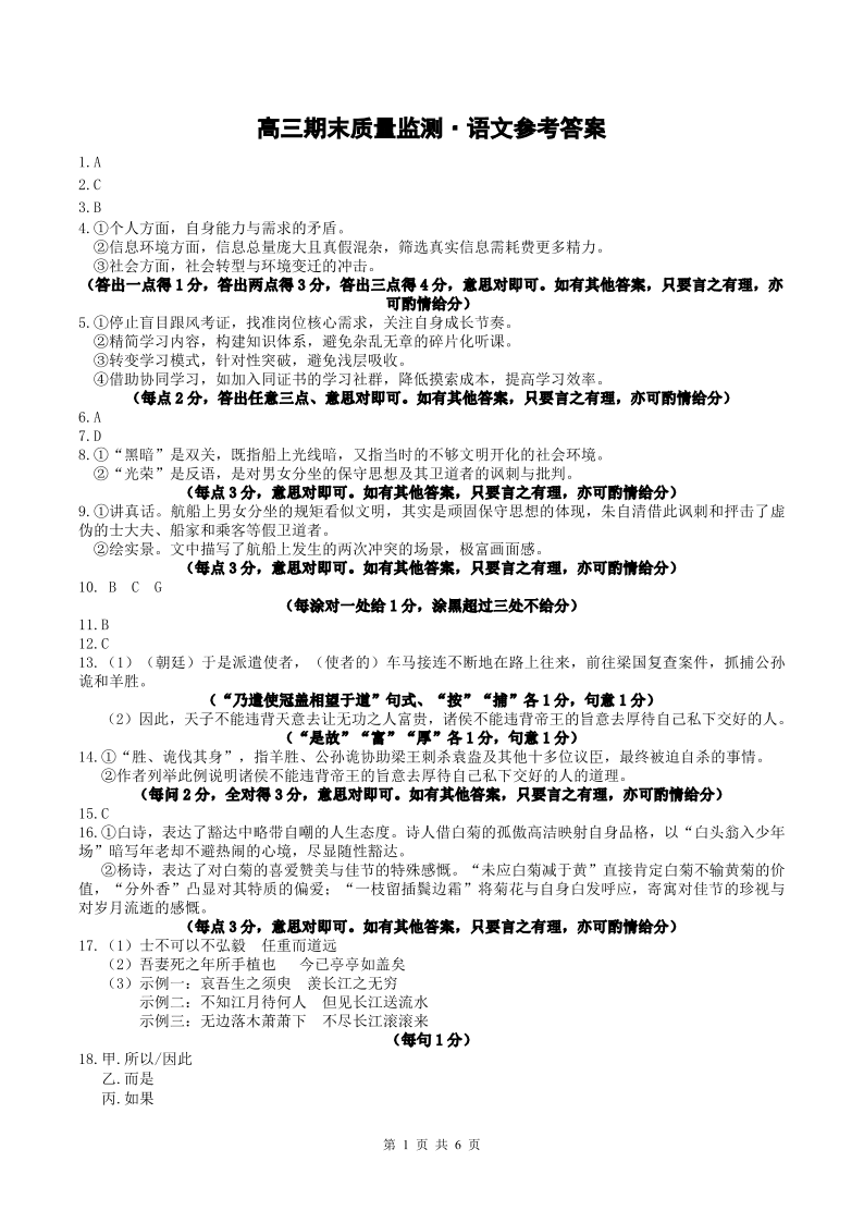 辽宁省点石联考2026届高三期末质量监测 语文答案.pdf