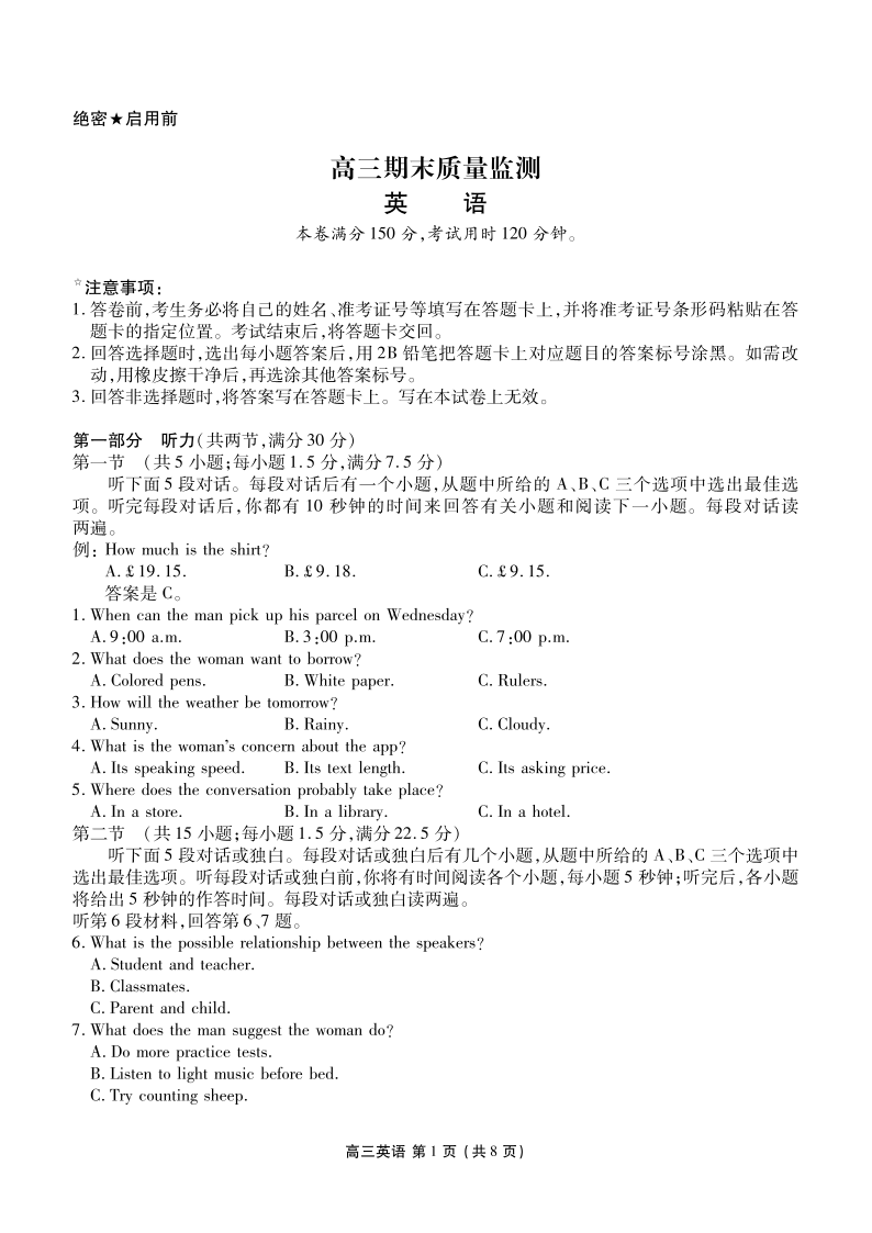 辽宁省点石联考2026届高三期末质量监测 英语.pdf