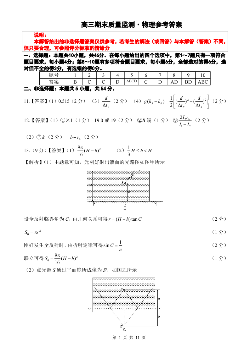 辽宁省点石联考2026届高三期末质量监测 物理答案.pdf