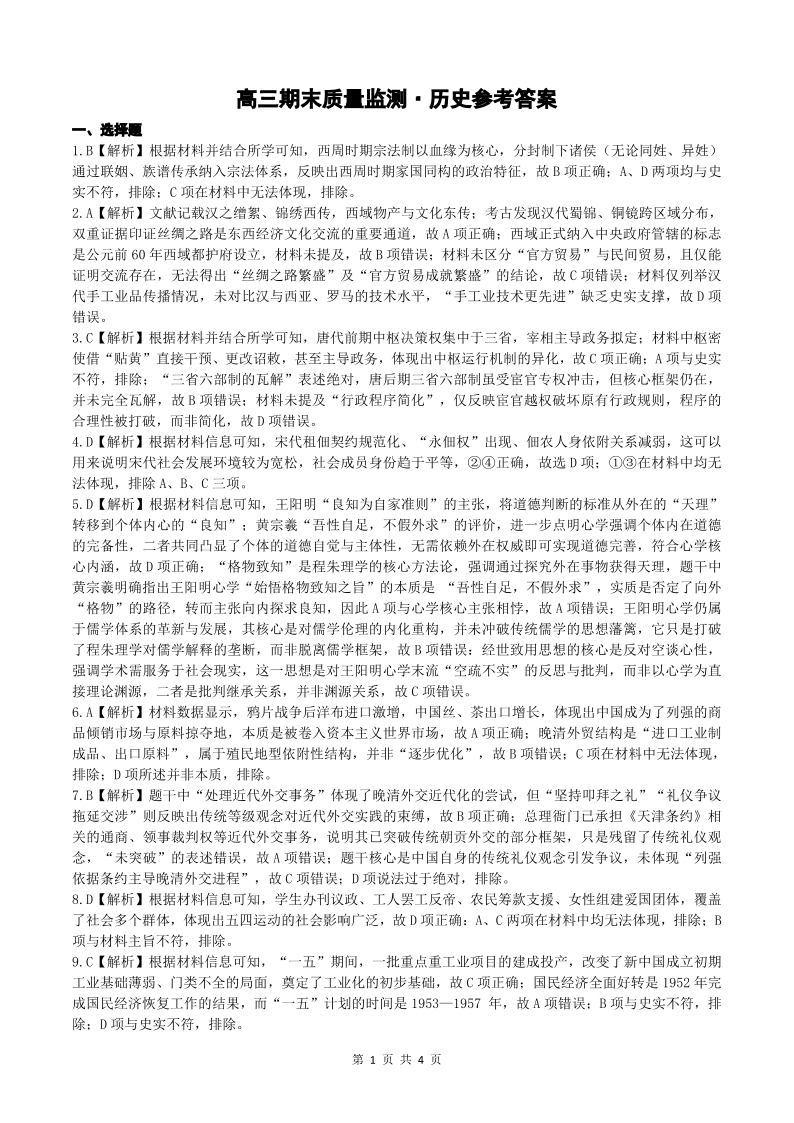 辽宁省点石联考2026届高三期末质量监测 历史答案.pdf