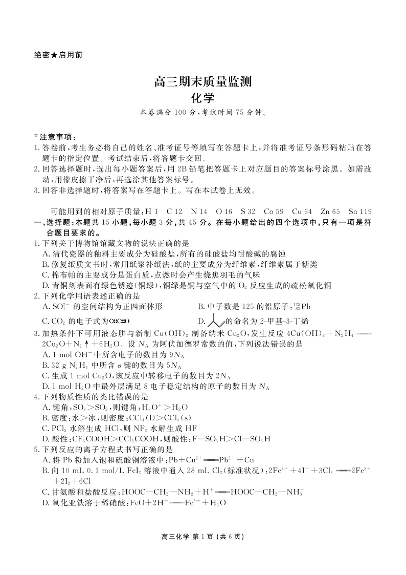 辽宁省点石联考2026届高三期末质量监测 化学.pdf