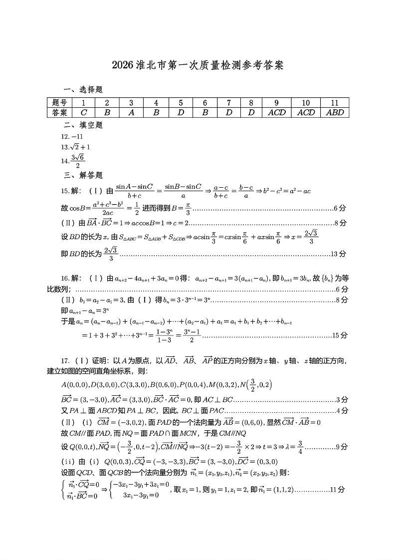 安徽省淮北市2026届高三年级第一次质量检测 数学答案.pdf