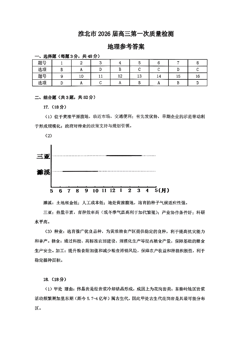 安徽省淮北市2026届高三年级第一次质量检测 地理答案.pdf