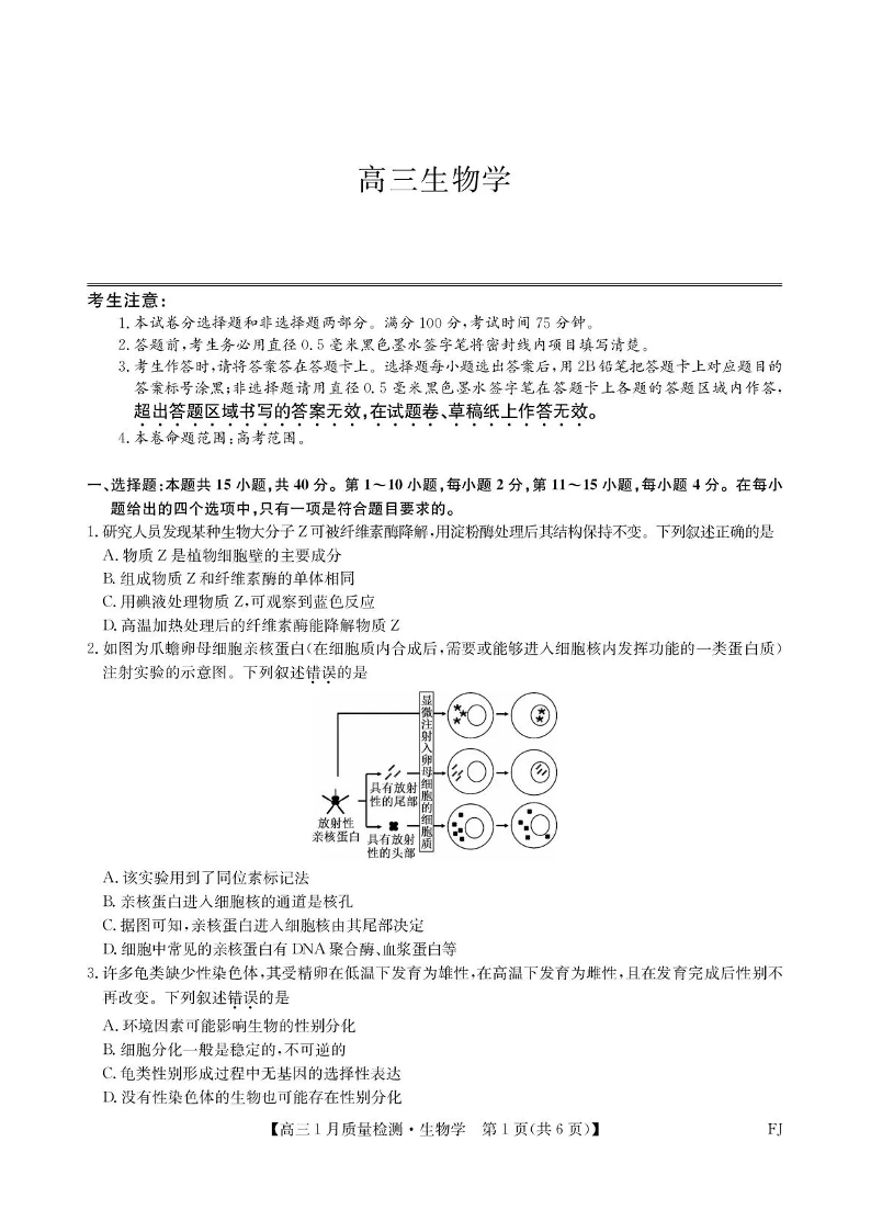 福建省莆田市2026届高中毕业班第一次质量检测 生物.pdf