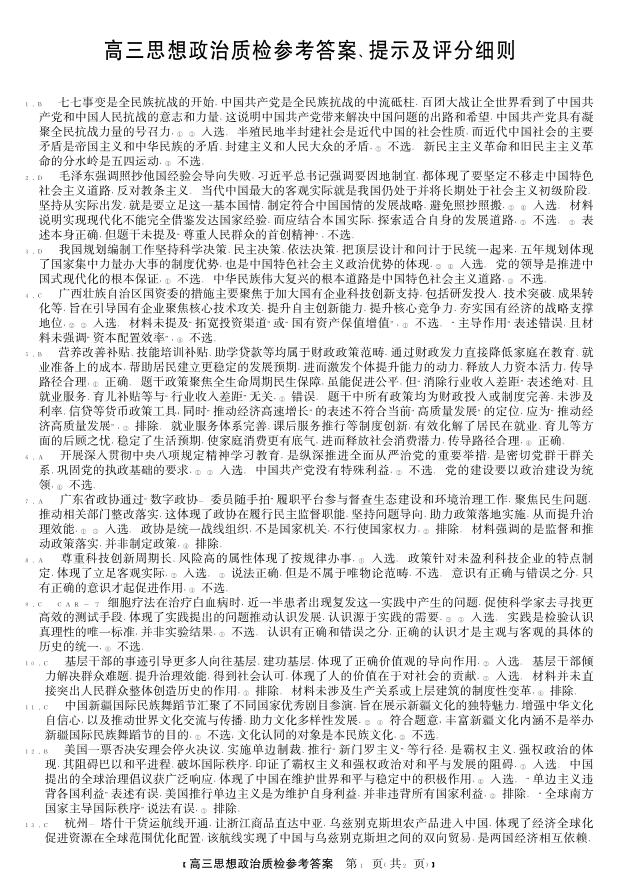 梅州市2026届高三上学期期末考试 政治答案.pdf