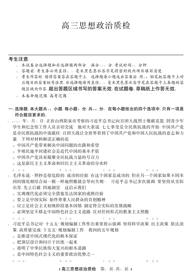 梅州市2026届高三上学期期末考试 政治.pdf
