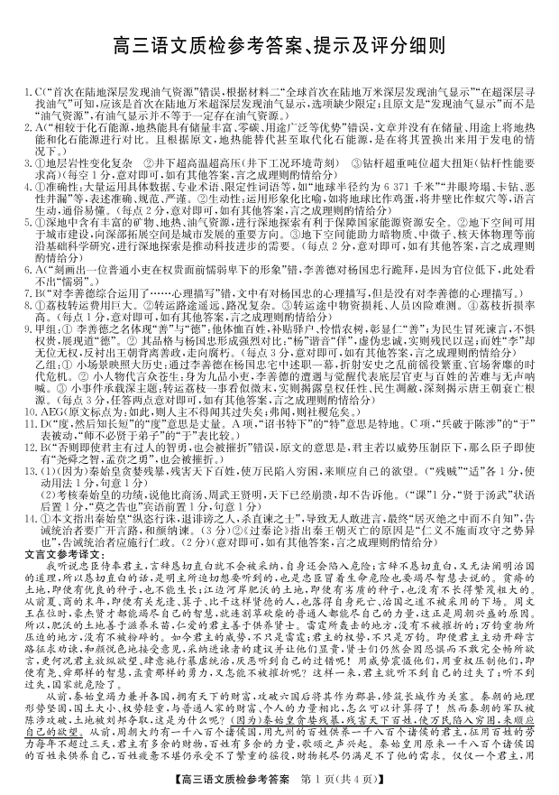 梅州市2026届高三上学期期末考试 语文答案.pdf