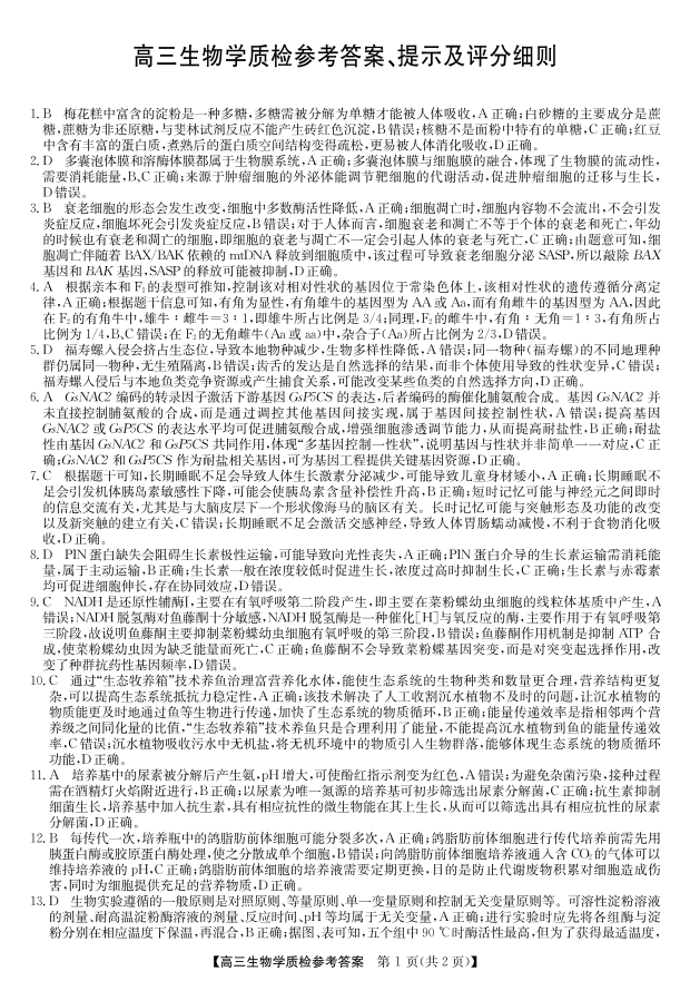 梅州市2026届高三上学期期末考试 生物答案.pdf