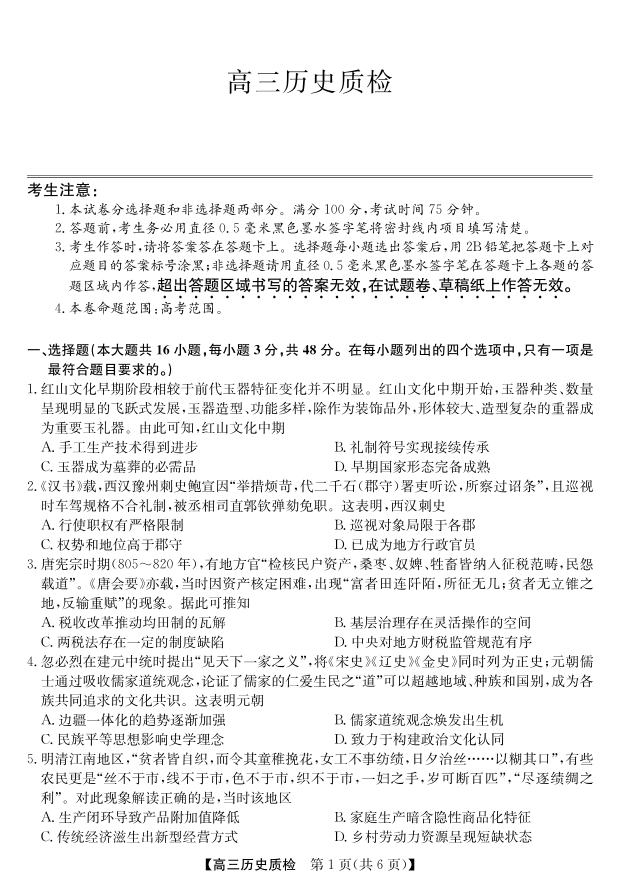 梅州市2026届高三上学期期末考试 历史.pdf