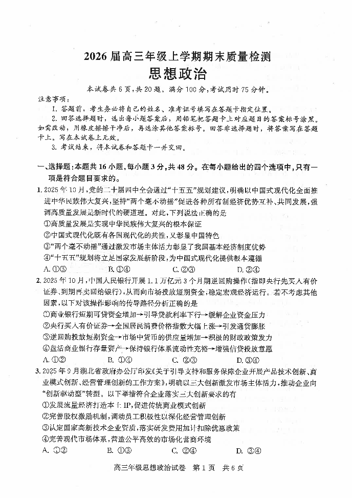 武昌区2026届高三年级上学期期末质量检测 政治.pdf
