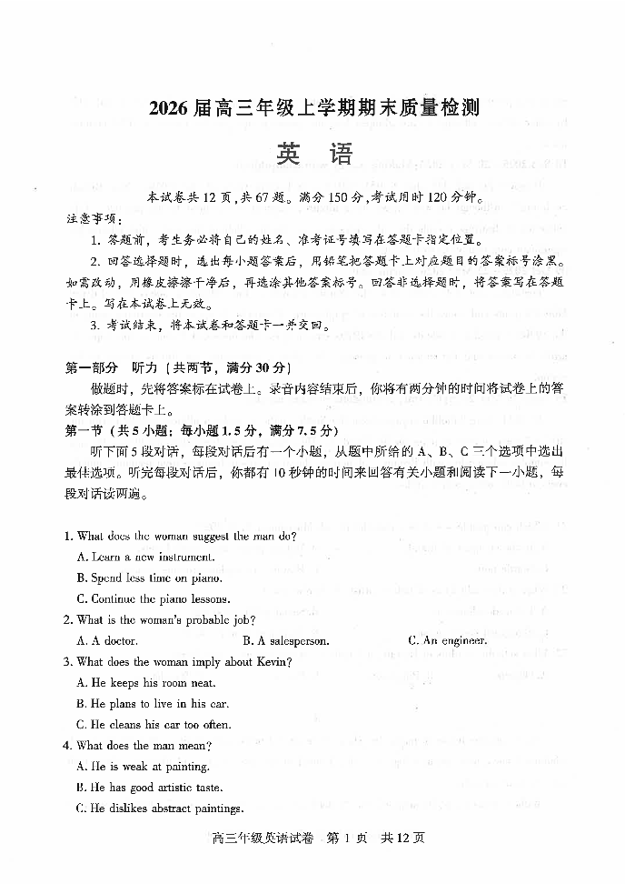 武昌区2026届高三年级上学期期末质量检测 英语.pdf