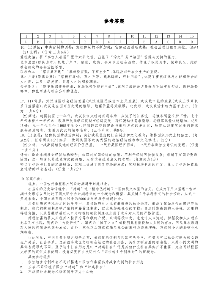 武昌区2026届高三年级上学期期末质量检测 历史答案.pdf