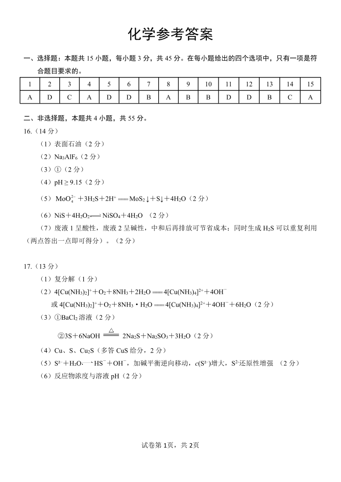 武昌区2026届高三年级上学期期末质量检测 化学答案.pdf