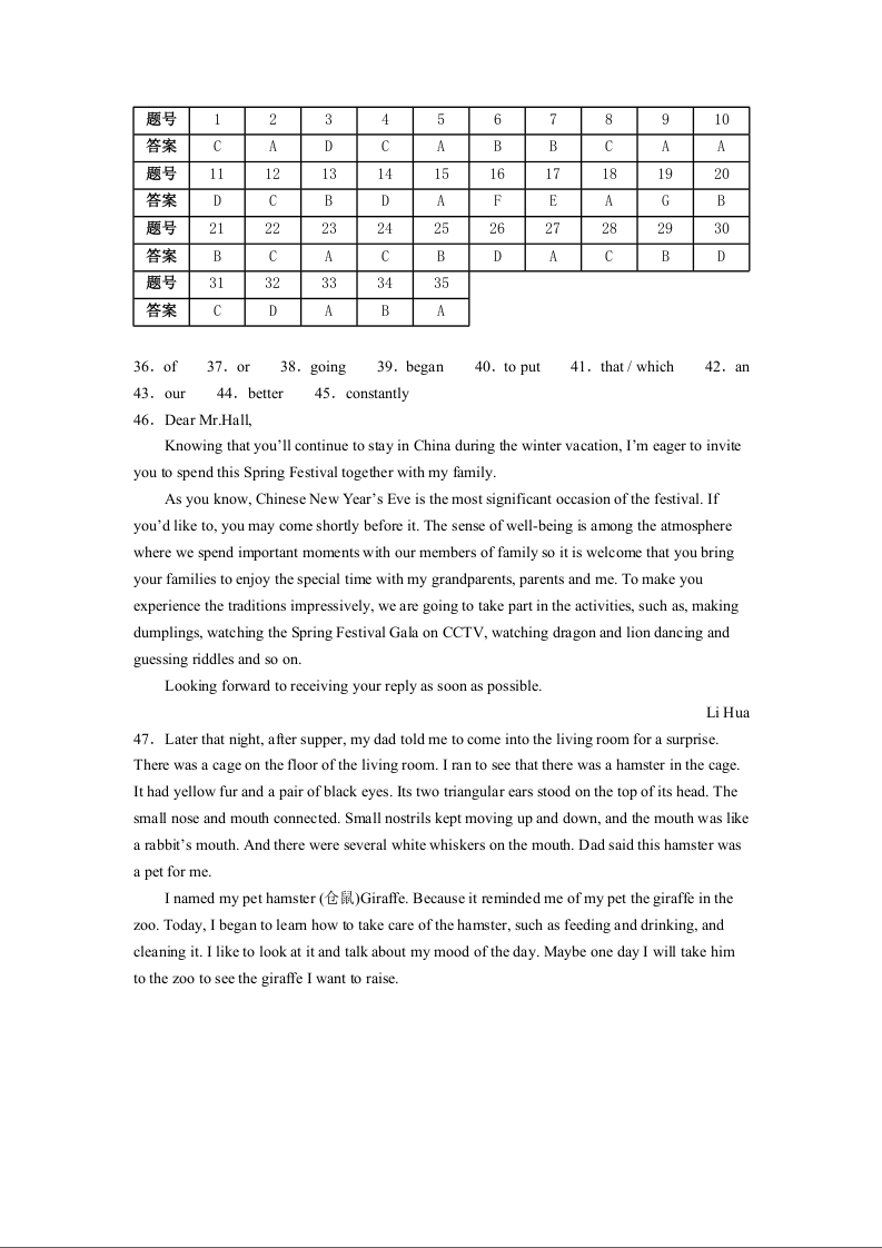 石嘴山市第一中学2025-2026学年高一上学期1月月考 英语答案.docx