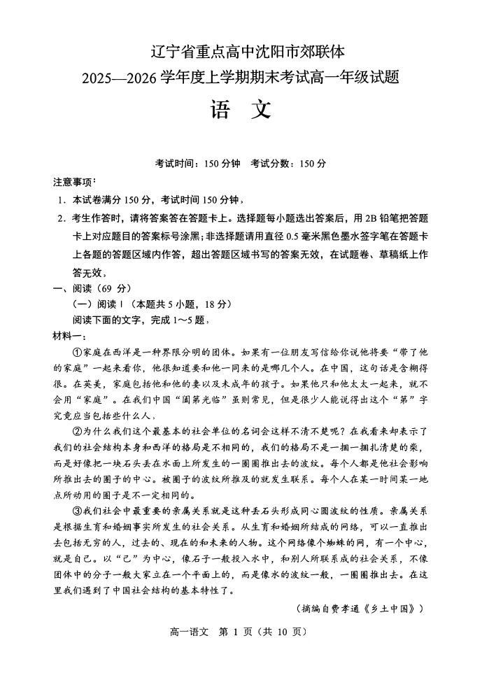 辽宁省重点高中沈阳市郊联体2025-2026学年高一上学期期末 语文.pdf
