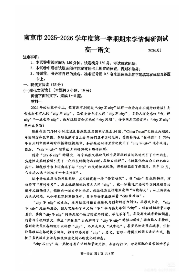 江苏省南京市2025-2026学年度第一学期高一期末学情调研测试 语文.pdf