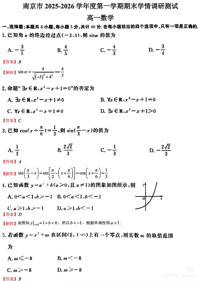 江苏省南京市2025-2026学年度第一学期高一期末学情调研测试 数学答案.pdf