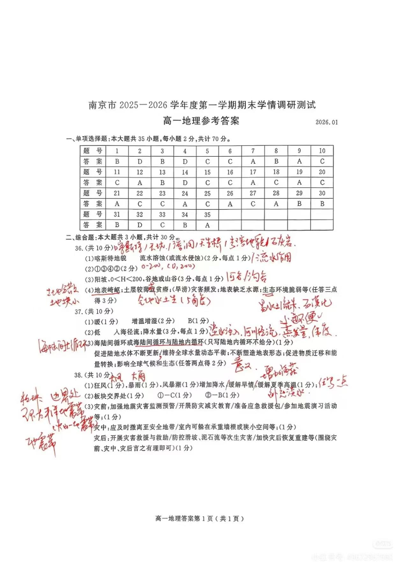 江苏省南京市2025-2026学年度第一学期高一期末学情调研测试 地理答案.pdf