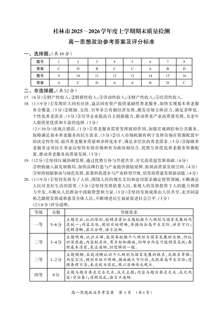 桂林市2025-2026学年度高一年级上学期期末质量检测 政治答案.pdf