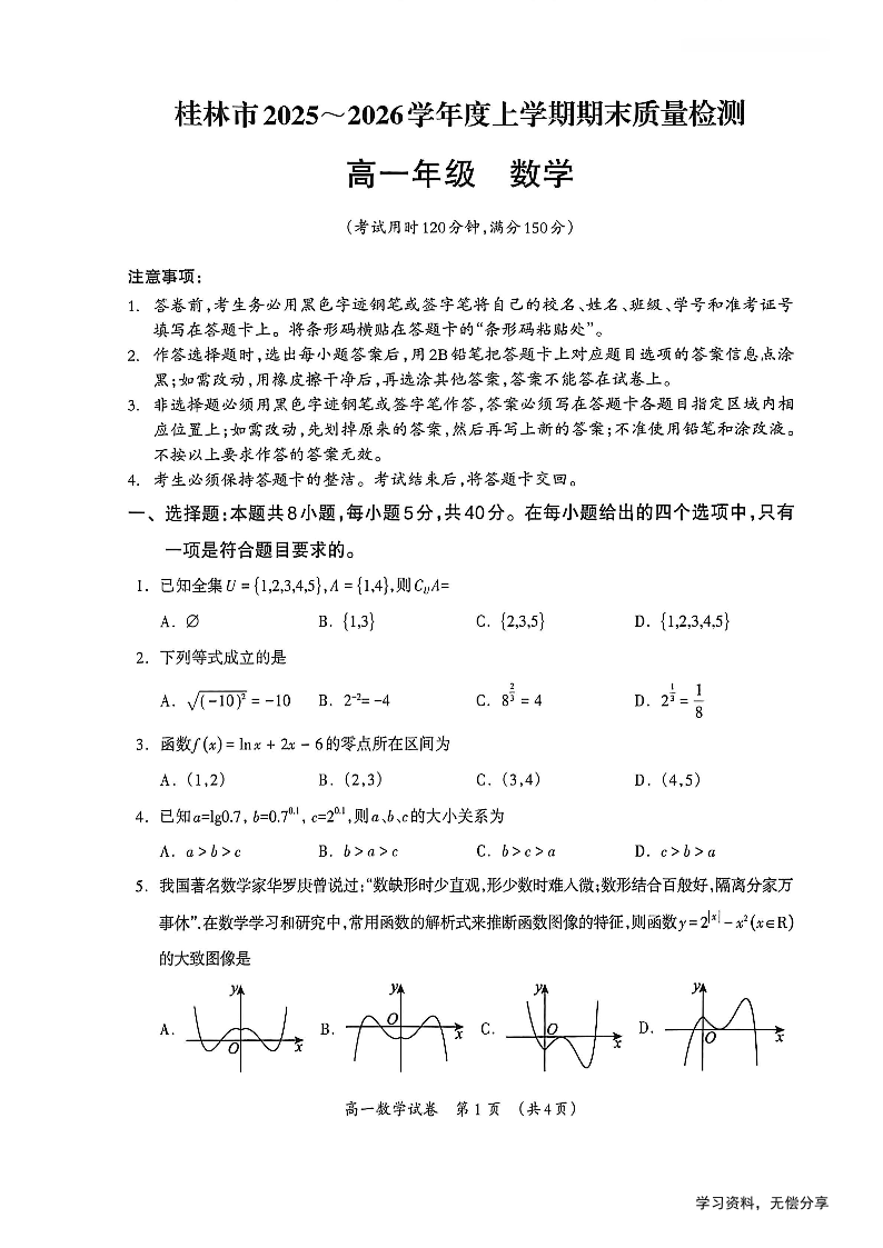 桂林市2025-2026学年度高一年级上学期期末质量检测 数学.pdf