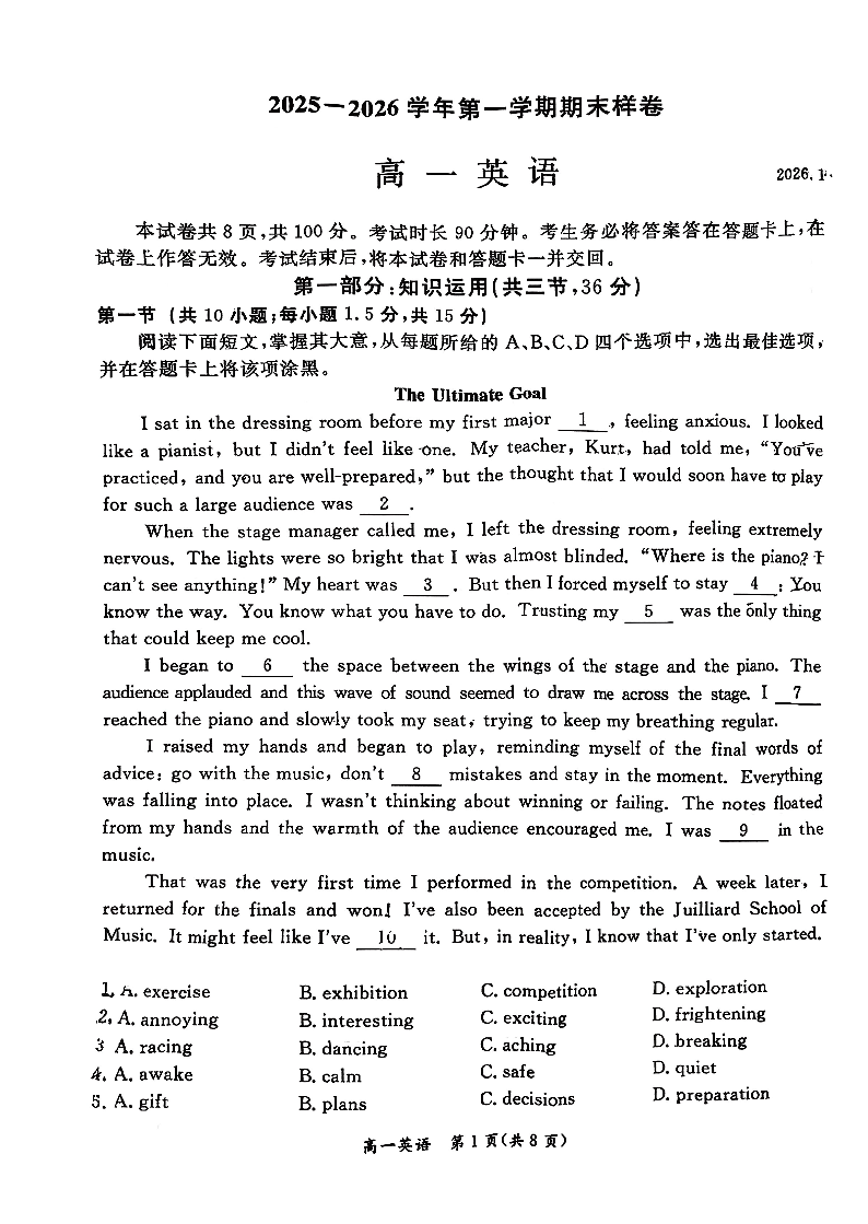 北京市东城区2025-2026学年高一上学期期末样卷 英语试题(含答案).pdf