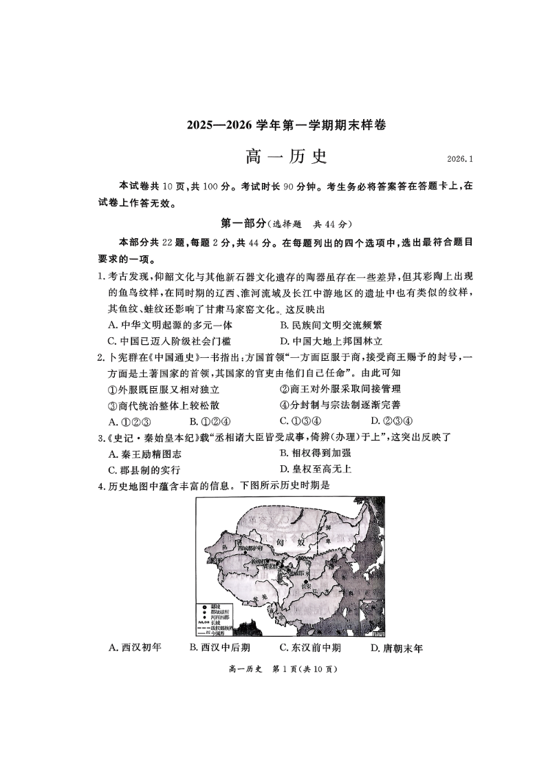 北京市东城区2025-2026学年高一上学期期末样卷 历史试题(含答案).pdf