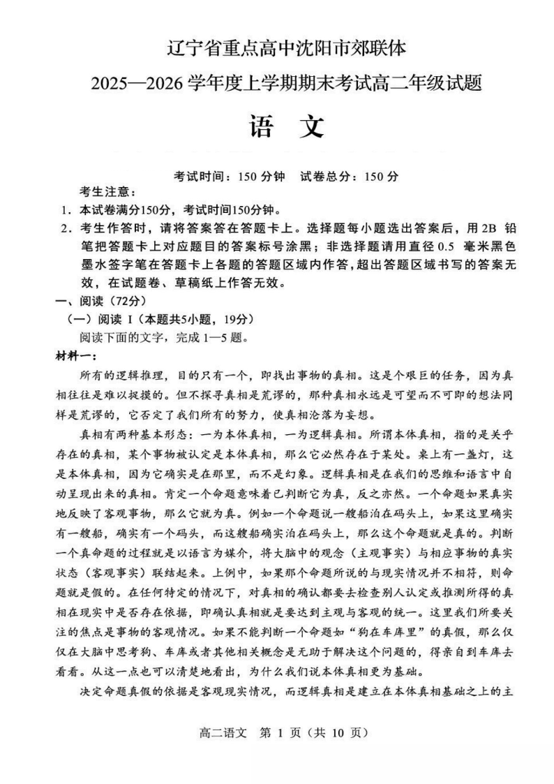 辽宁省重点高中沈阳市郊联体2025-2026学年高二上学期期末 语文.pdf
