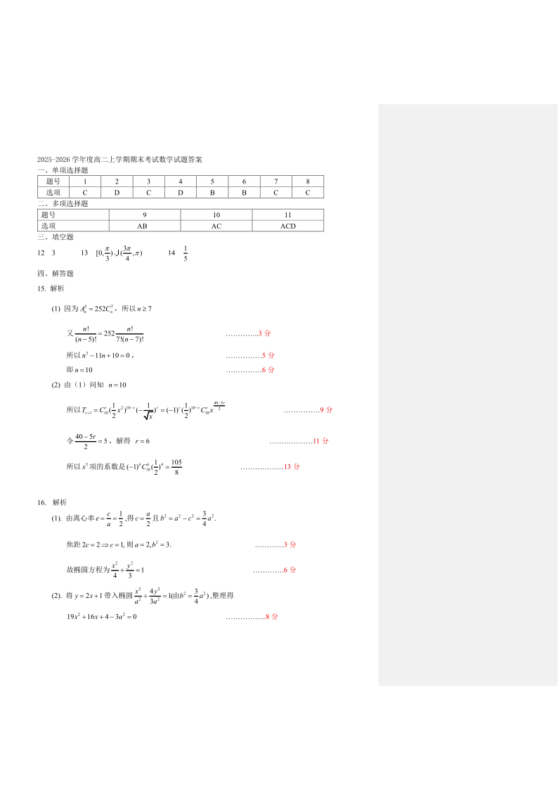 辽宁省重点高中沈阳市郊联体2025-2026学年高二上学期期末 数学答案.pdf