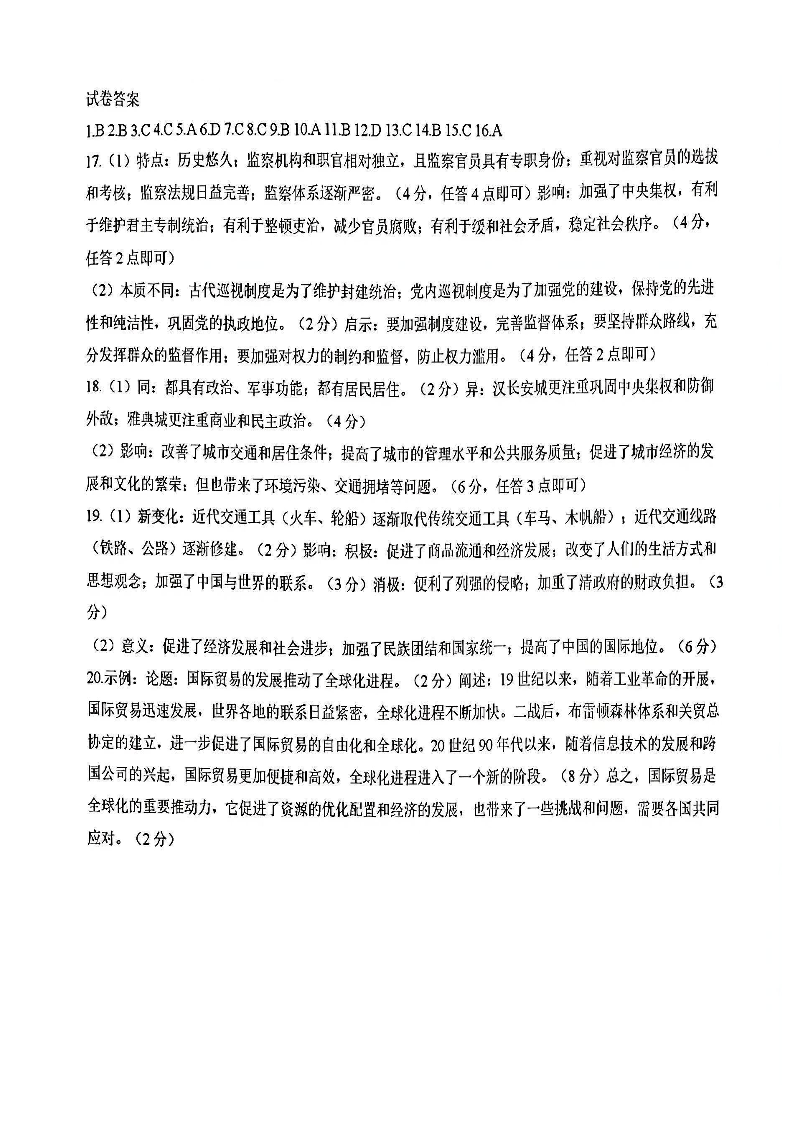 辽宁省重点高中沈阳市郊联体2025-2026学年高二上学期期末 历史答案.pdf