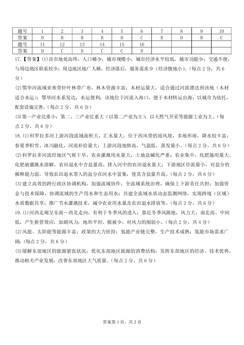 辽宁省重点高中沈阳市郊联体2025-2026学年高二上学期期末 地理答案.docx