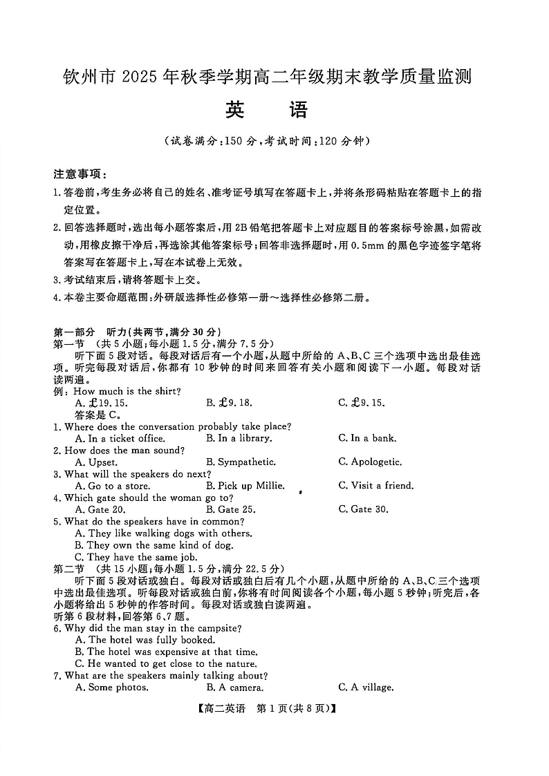 钦州市2025年秋季学期高二年级期末教学质量监测 英语.pdf