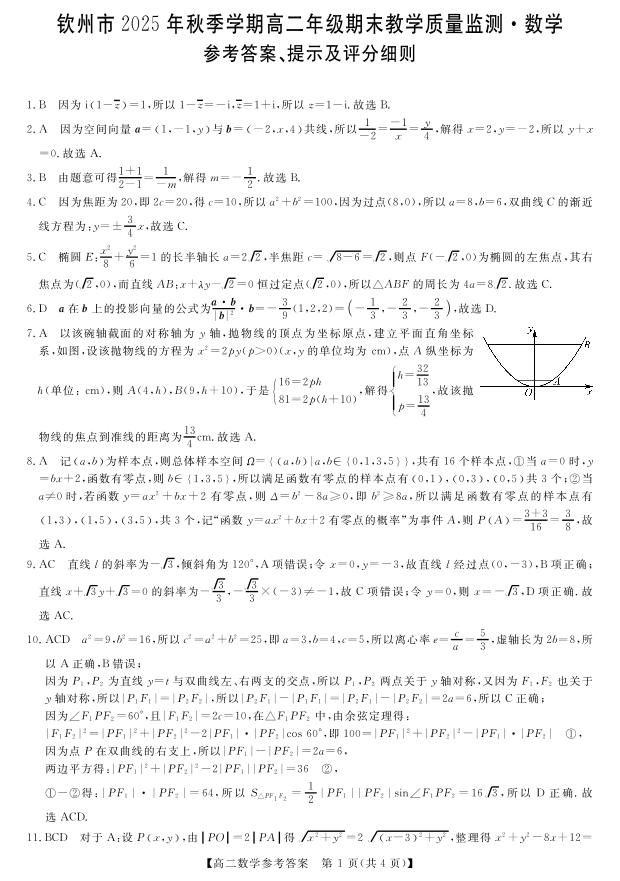 钦州市2025年秋季学期高二年级期末教学质量监测 数学答案.pdf