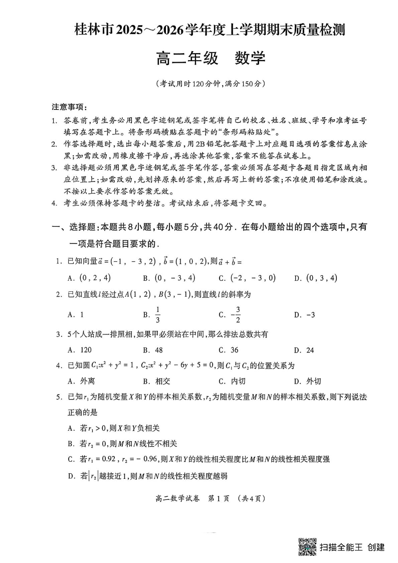 桂林市2025-2026学年高二年级上学期期末质量检测 数学.pdf