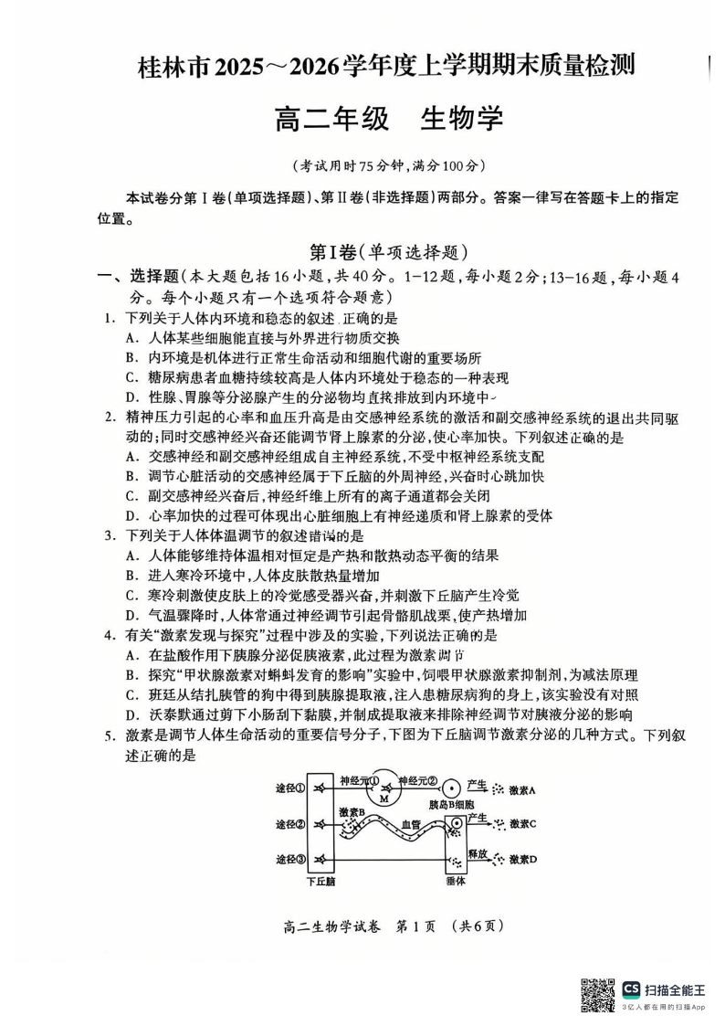 桂林市2025-2026学年高二年级上学期期末质量检测 生物.pdf