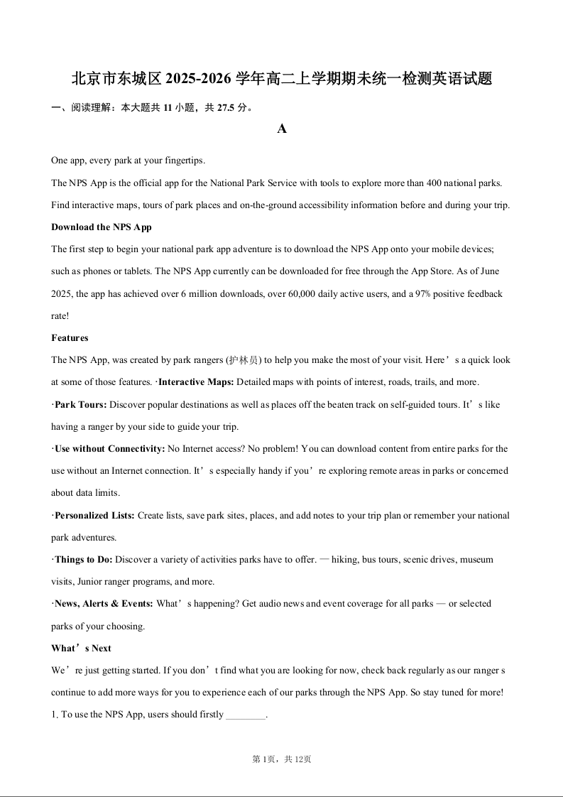 北京市东城区2025-2026学年高二上学期期末样卷 英语试题(含答案).docx