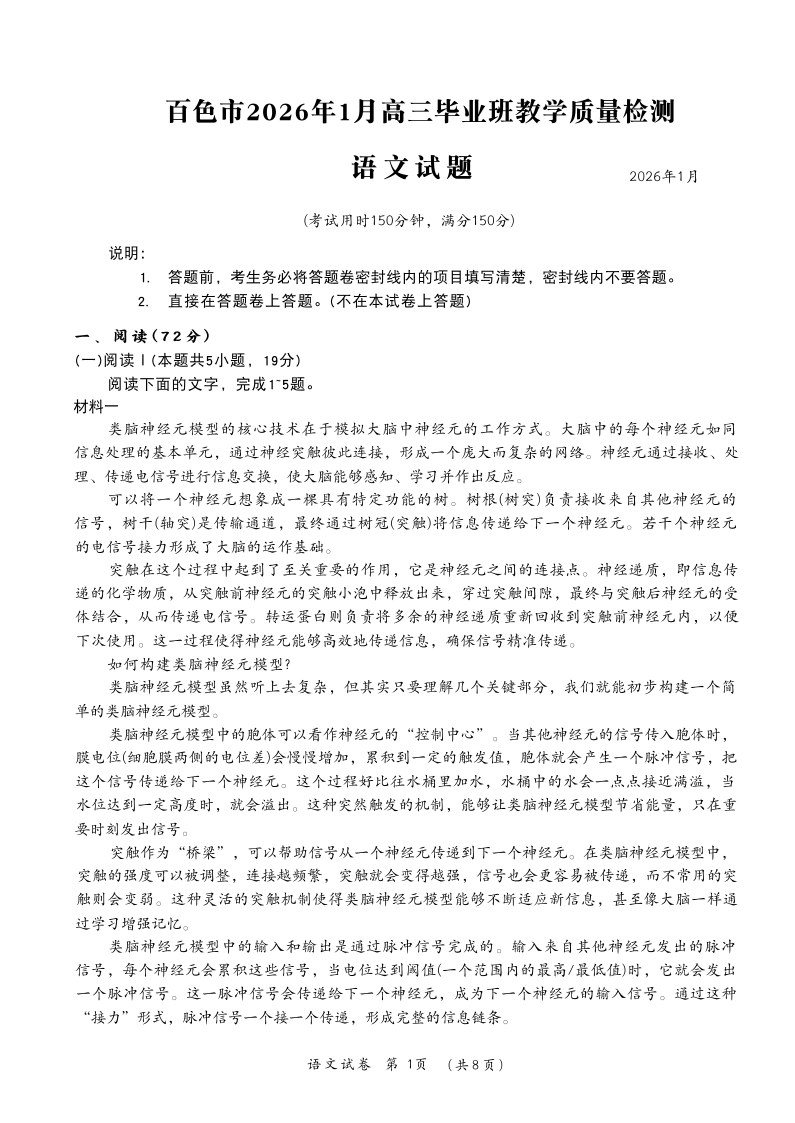 百色市2026年1月高三毕业班教学质量检测 语文.pdf