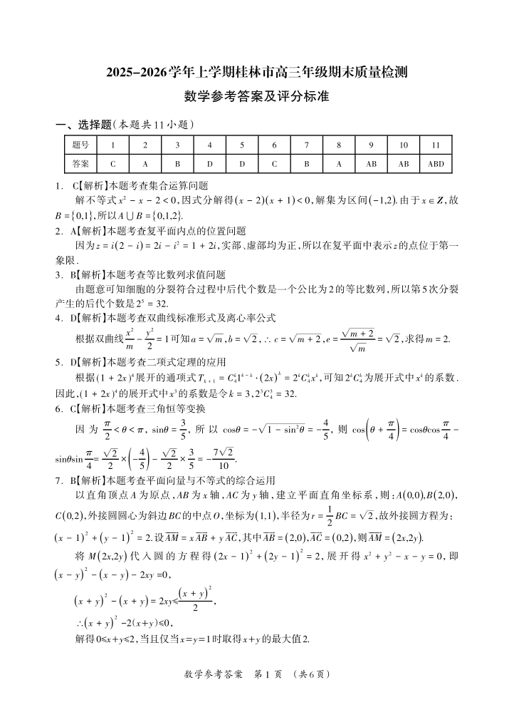 百色市2026年1月高三毕业班教学质量检测 数学答案.pdf