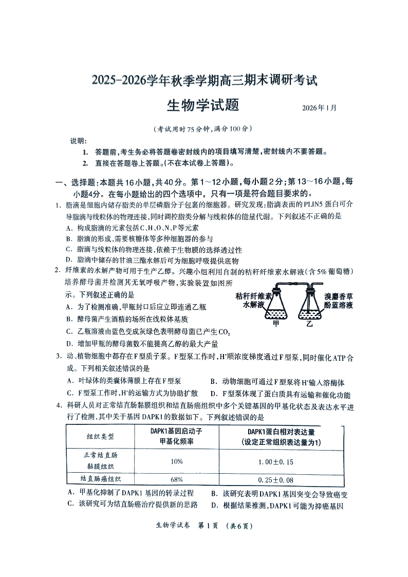 百色市2026年1月高三毕业班教学质量检测 生物.pdf