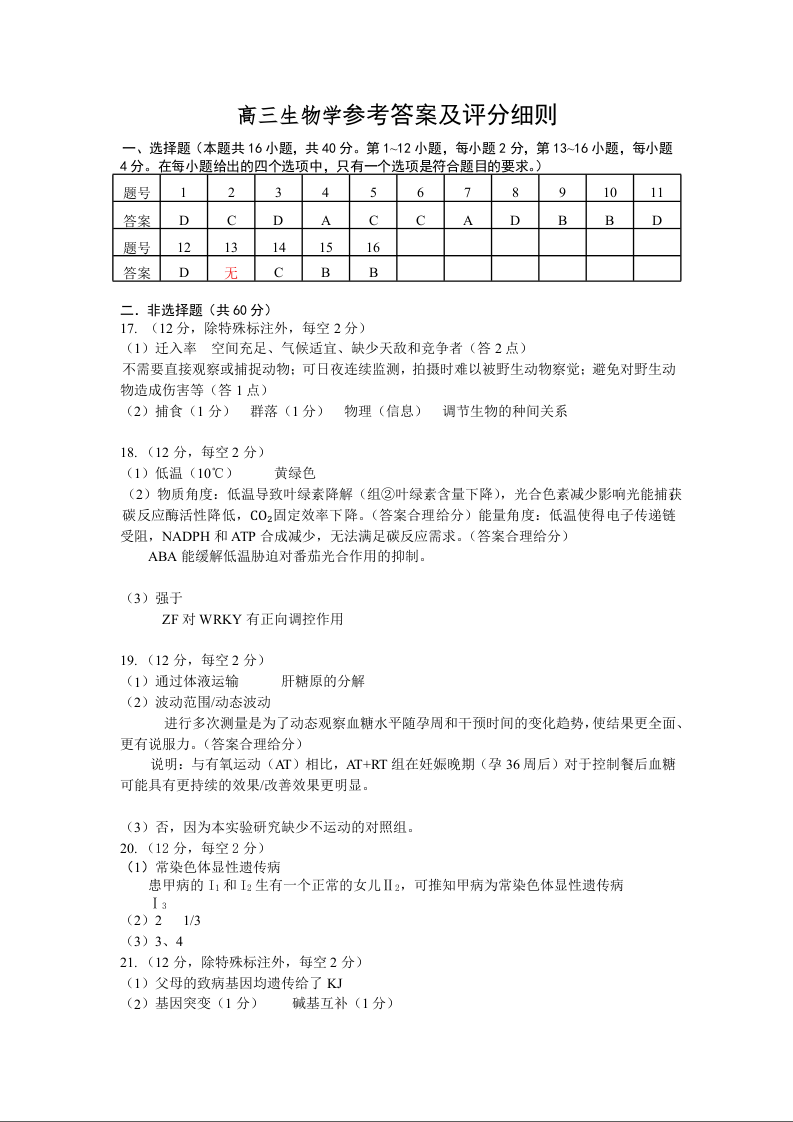 深圳市龙岗区2025-2026学年第一学期高三期末质量监测 生物答案.docx