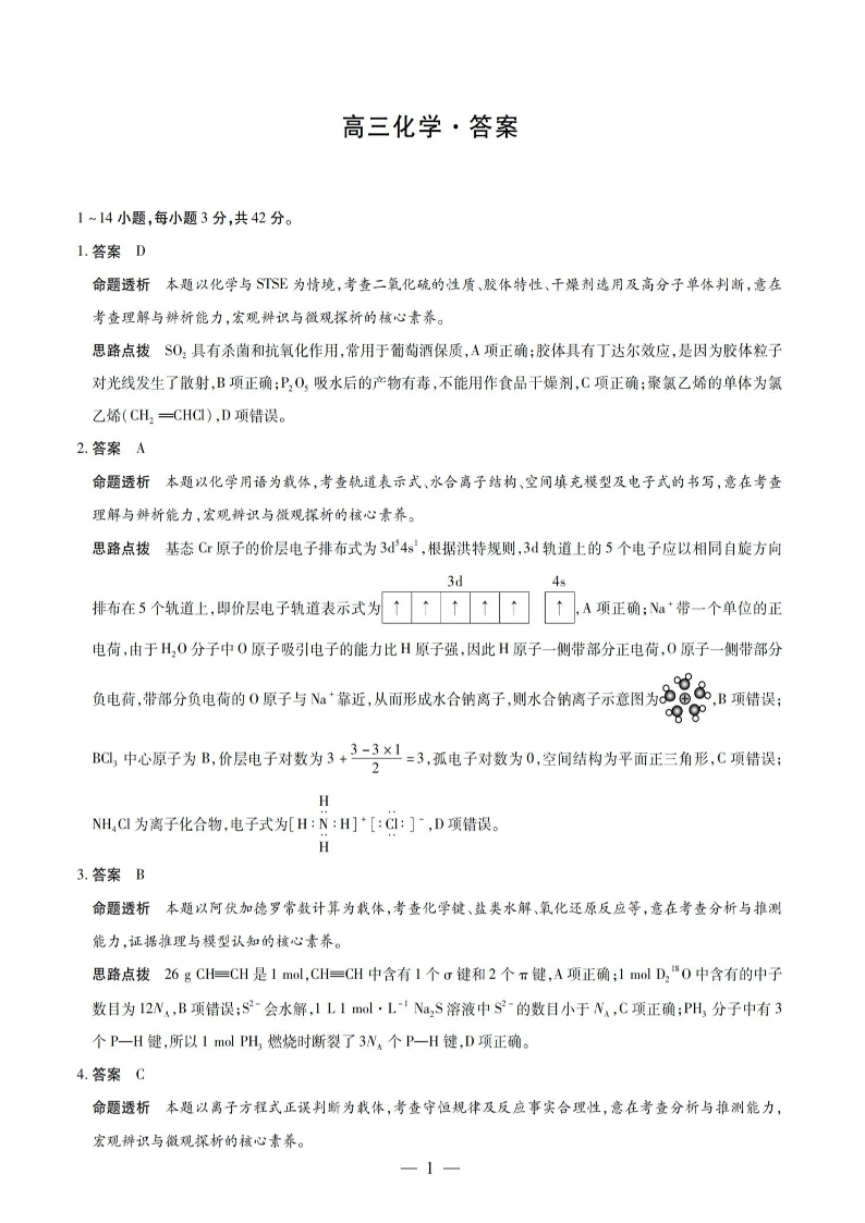深圳市龙岗区2025-2026学年第一学期高三期末质量监测 化学答案.pdf