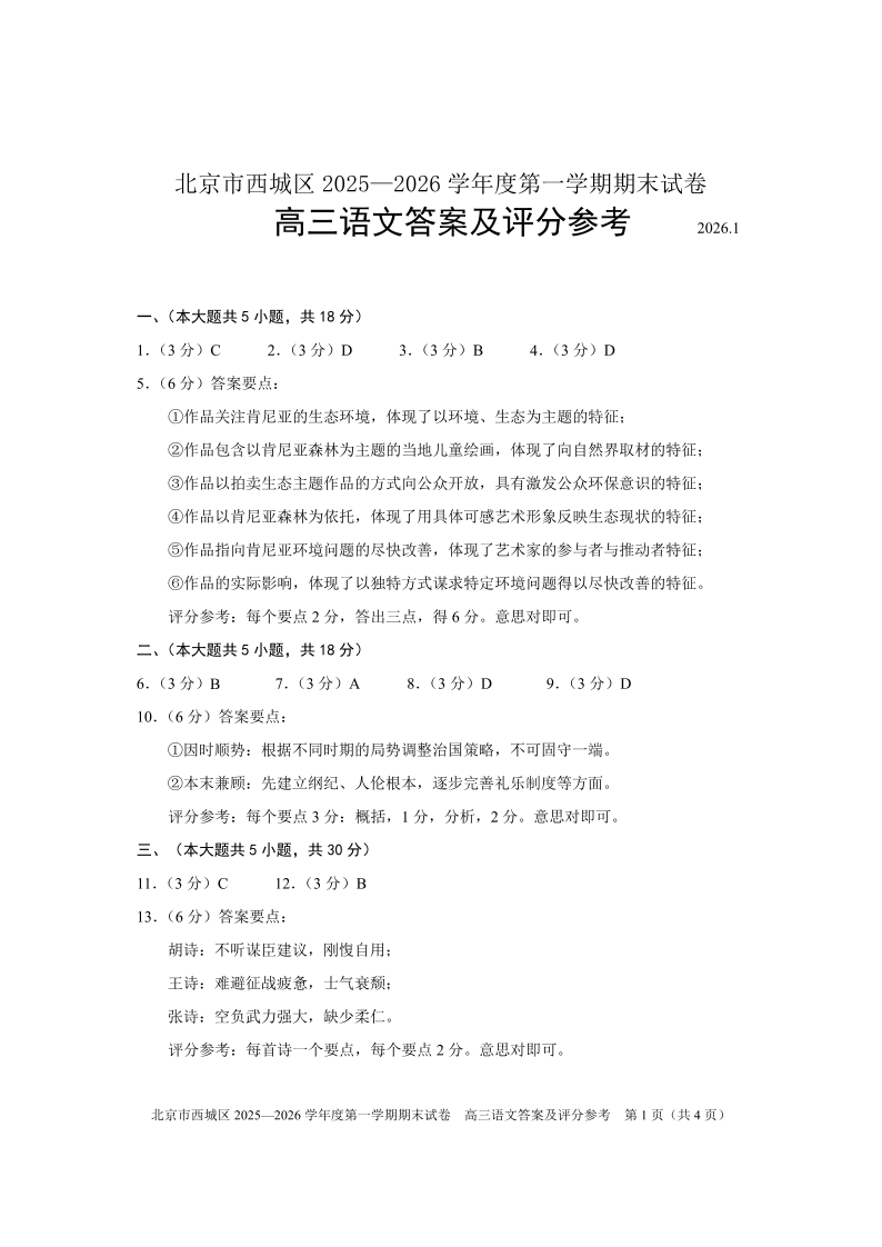 北京市西城区2025-2026学年度高三第一学期期末试卷 语文答案.pdf