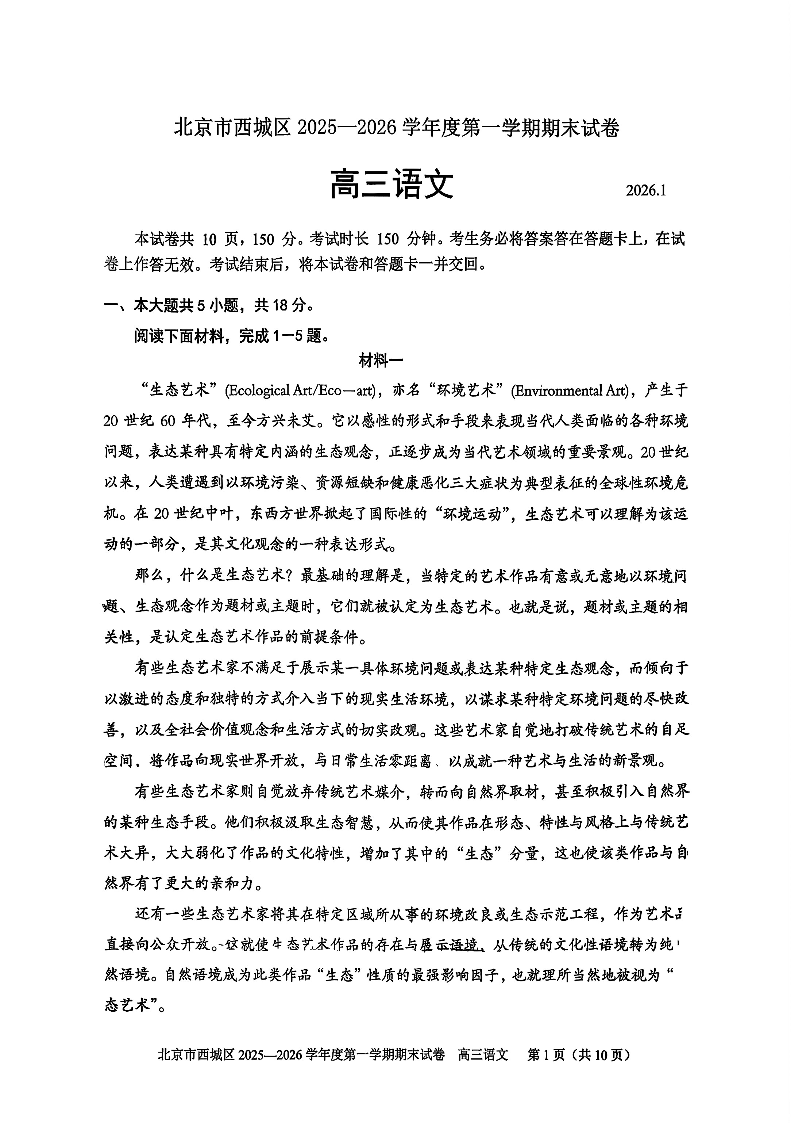 北京市西城区2025-2026学年度高三第一学期期末试卷 语文.pdf