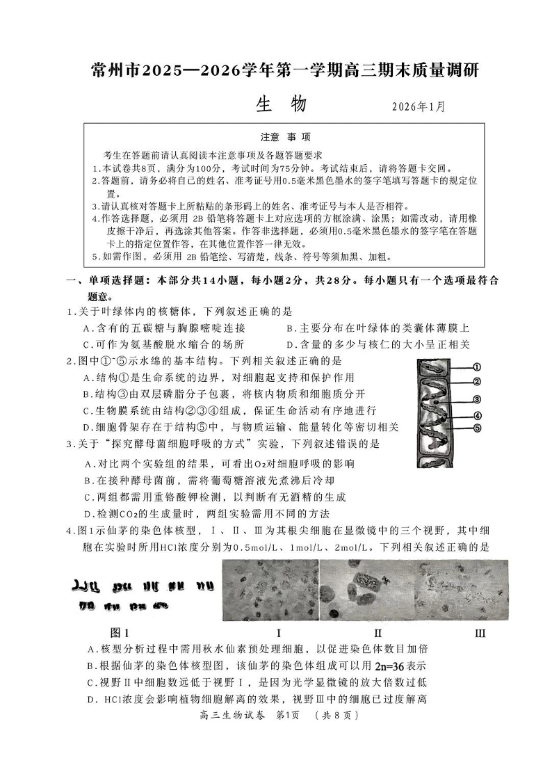 江苏省常州市2025-2026学年第一学期高三年级期末质量调研 生物.pdf