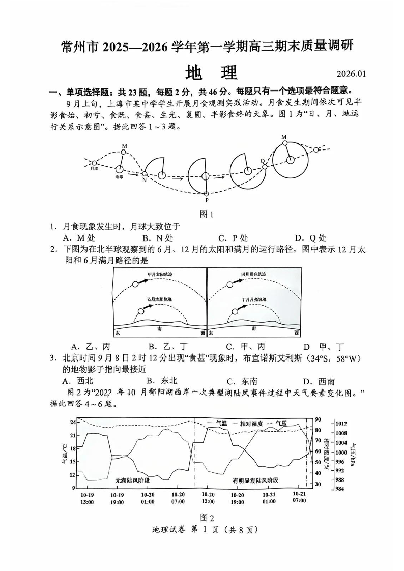 江苏省常州市2025-2026学年第一学期高三年级期末质量调研 地理答案.pdf