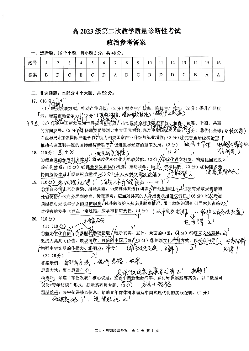 泸州市高2023级第二次教学质量诊断性考试 政治答案.pdf