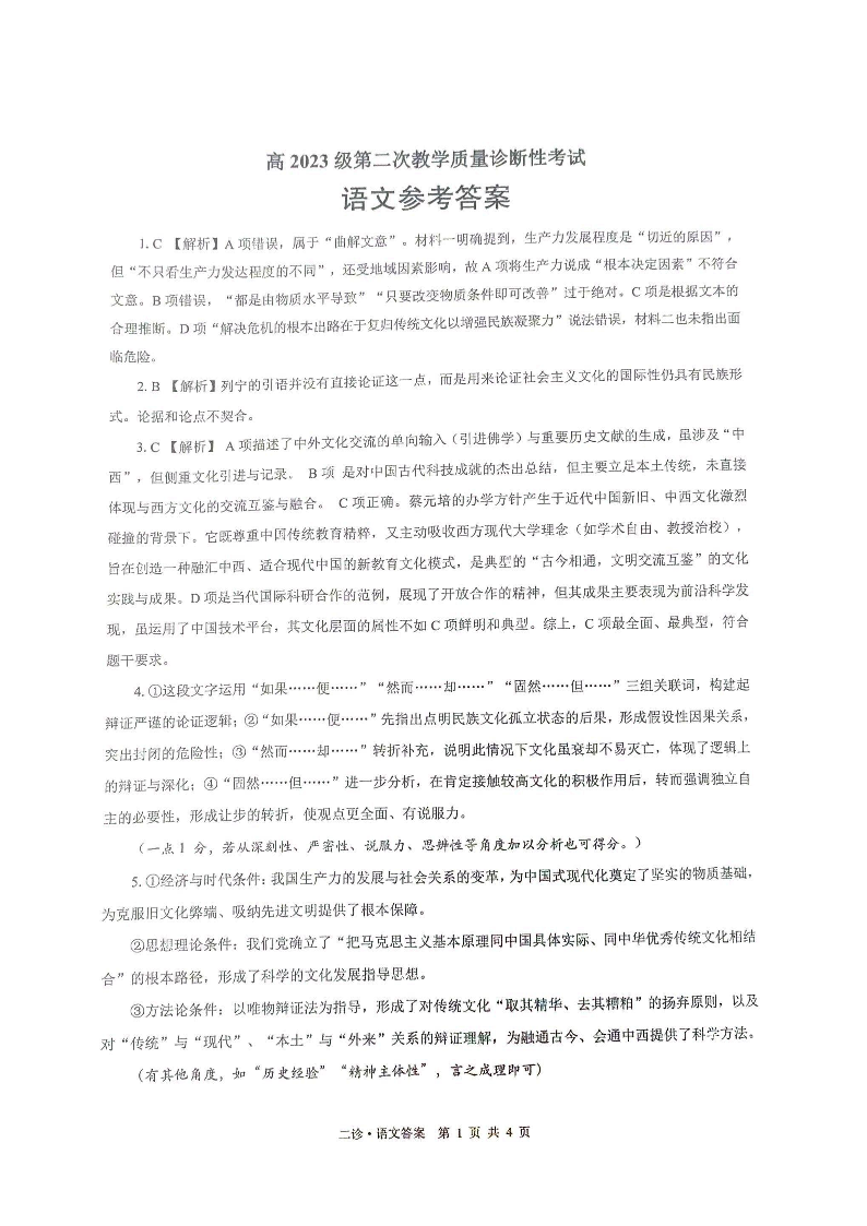 泸州市高2023级第二次教学质量诊断性考试 语文答案.pdf