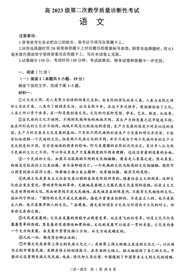 泸州市高2023级第二次教学质量诊断性考试 语文.pdf