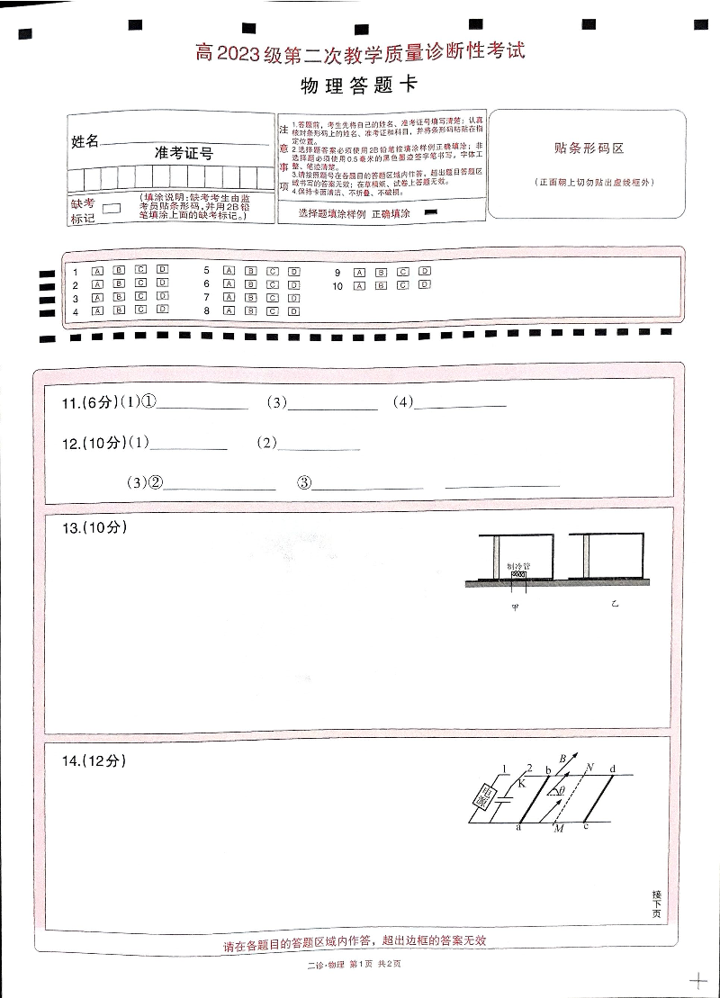 泸州市高2023级第二次教学质量诊断性考试 物理答题卡.pdf